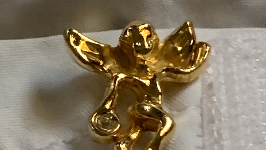 While old faithful here has been through a lot with me. Thousands of miles and a dozen countries over 13 years. Now not so white, a little ripped here and there so time to retire it. And most important of all, riding around just under the right pocket flap was always a little angel pin. Thanks Sandy from the credit union for that pin.